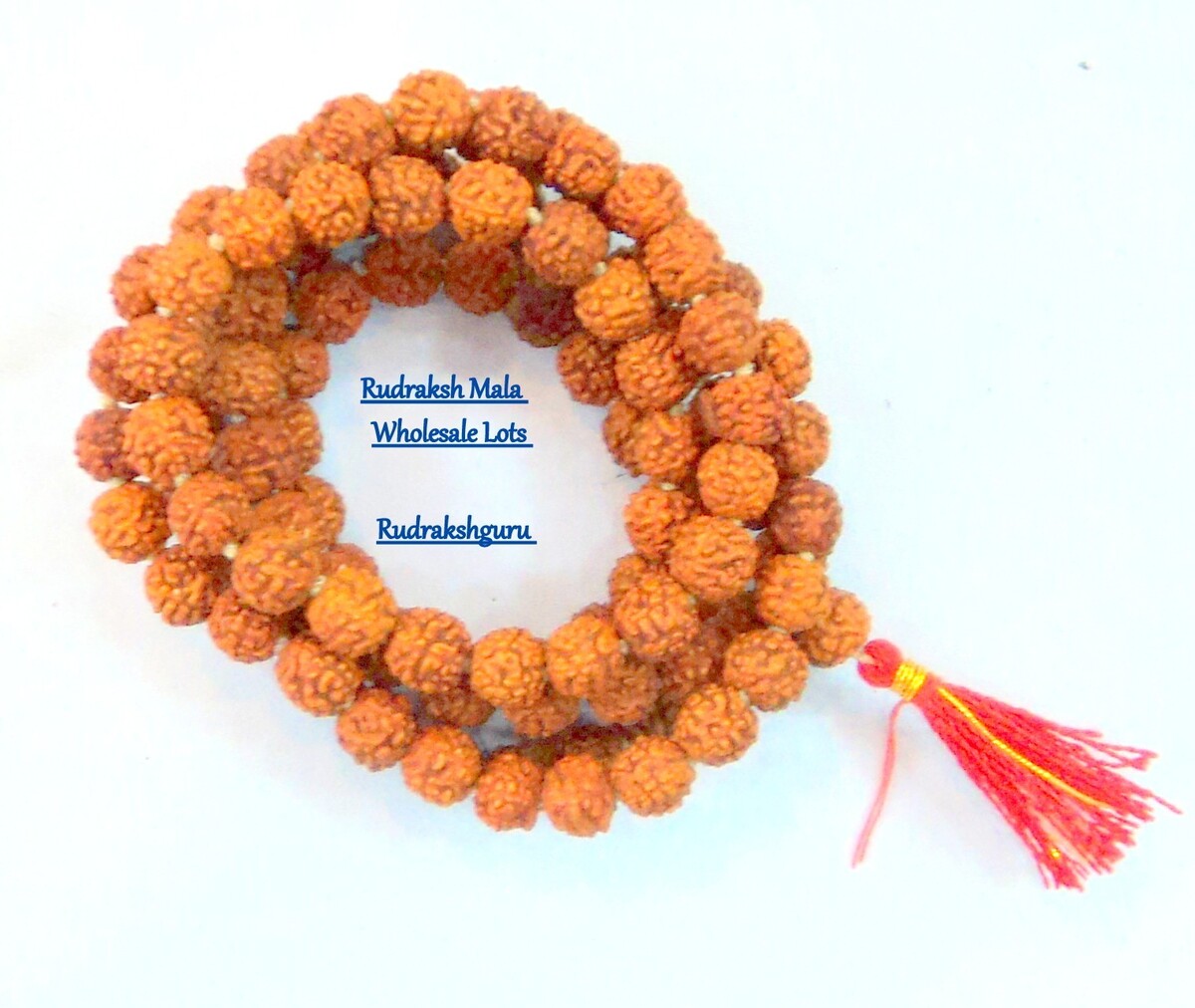Item Name : 5 Mukhi (5 Face ) Rudraksha Mala - Wholesale Lots Number of Beads In Each Mala : 108 +1 Note : All the sizes 9 mm , 8 mm , 7 mm , 6 mm , 5 mm can be shipped with in Loose Thread (Without any knot in between each bead) also with in Knot in between each bead .