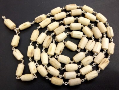Lunghezza di Mala: 42 pollici (da ist perla fino all'ultimo tallone) // 21 pollici (intorno al collo) Progetto : Realizzato con perle tulsi bianche pure selezionate in forte filo d'argento con uno stile tradizionale del nodo. Tulsi significa "l'incomparabile". Tulsi e divinita. Ha un aspetto molto distinto, aroma e sapore. Tulsi e premiato come l'incarnazione 4 della dea suprema ed e usato per cantare mantra di Lord Vishnu, Ram e Krishna. Mantiene la purezza rituale e rischia il male. Tulsi e considerato la quarta incarnazione della dea suprema. Secondo l'Ayurveda, e molto utile per curare le malattie della gola. Viene anche usato per la purificazione del corpo. Da tranquillita e riduce lo stress