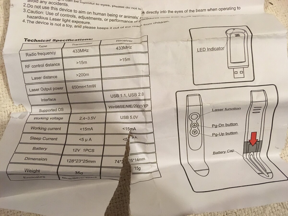 ITEM : New CEdMA Red Laser Pointer Presenter USB Dongle Receiver 12V Battery