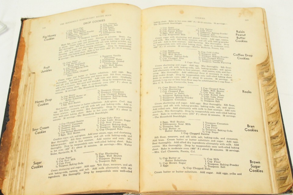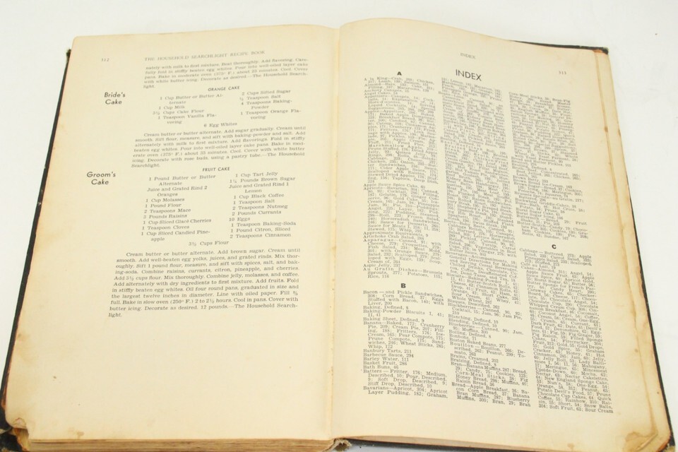 Household Searchlight Recipe Book 1940's Cookbook w/tabs 10.5 x 7 x 1 Inch HC