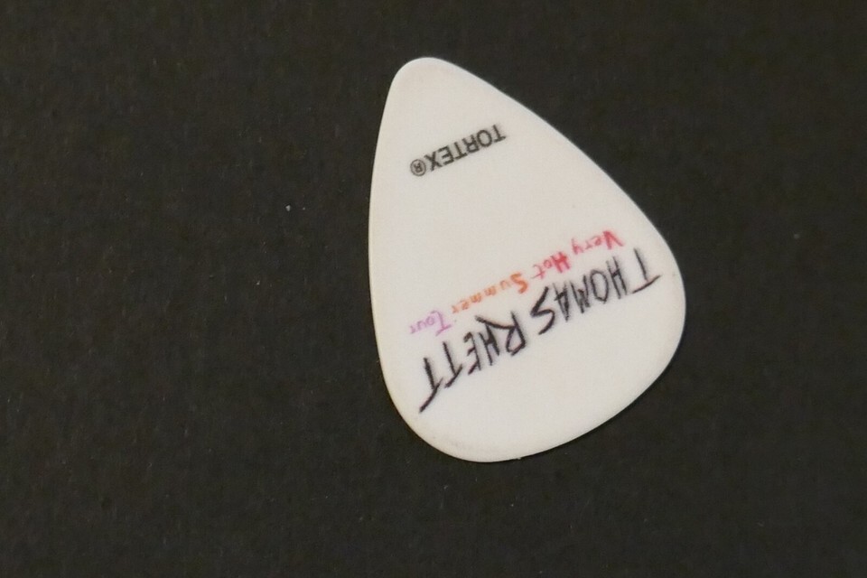 This rare Thomas Rhett guitar pick from his "Very Hot Summer Tour" is a must-have for any country music fan. The pick is an original, and a perfect way to show your love for Thomas Rhett. This was used on stage while touring in Michigan. Don't miss your chance to own a piece of music history with this rare Thomas Rhett guitar pick.
