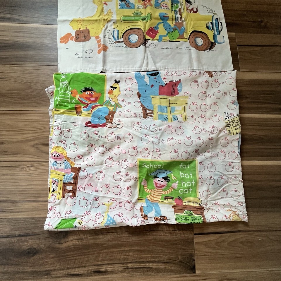 Vintage Sesame Street School Bus Twin Fitted Sheet & Pillowcase