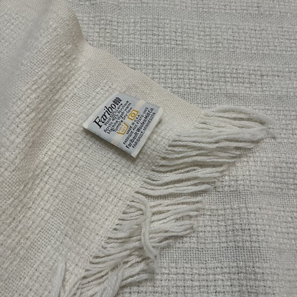Vintage Faribo Wool Blend Cream Fringe Throw and similar items
