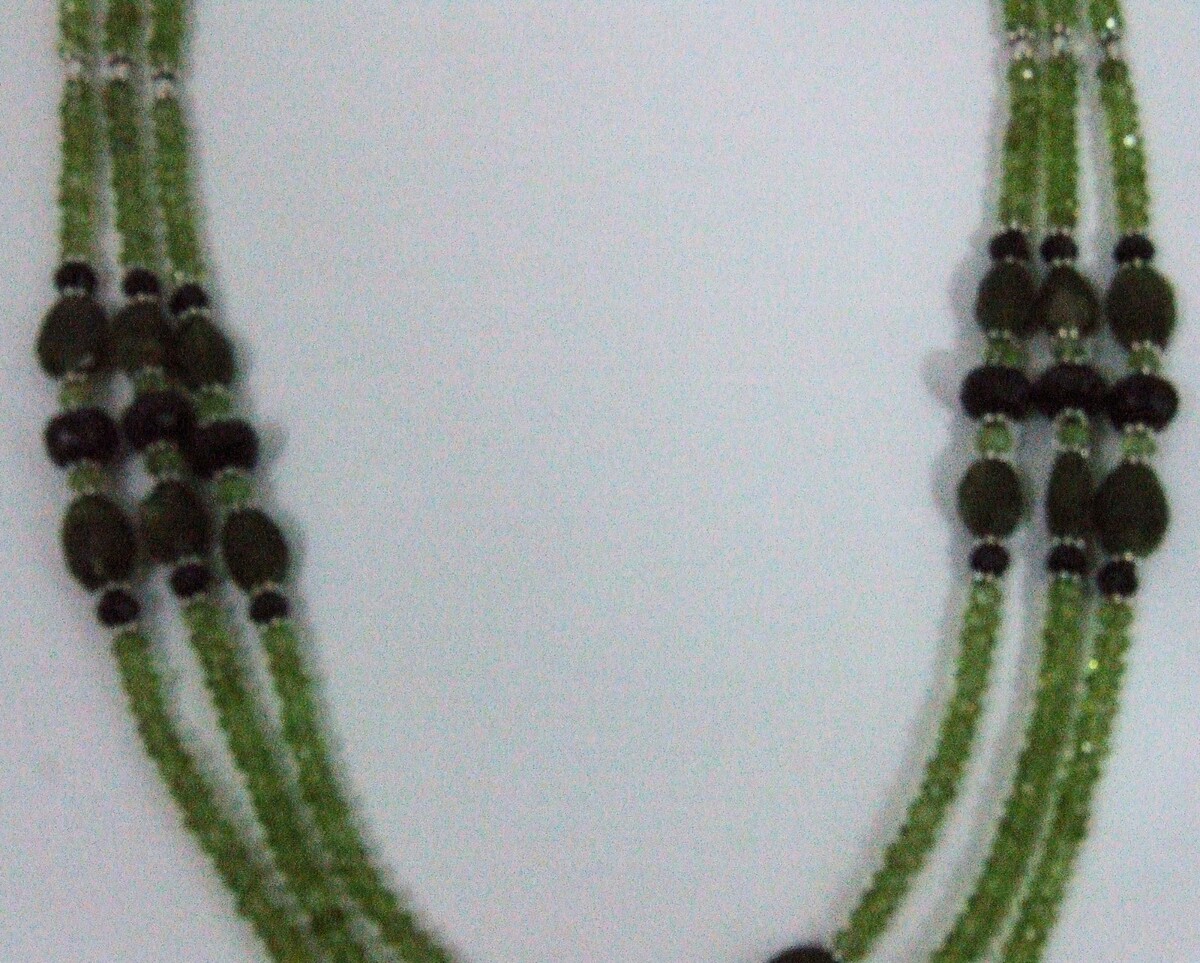 Dies ist eine Halskette aus Silber und eingebettet mit Peridotitsteinen.