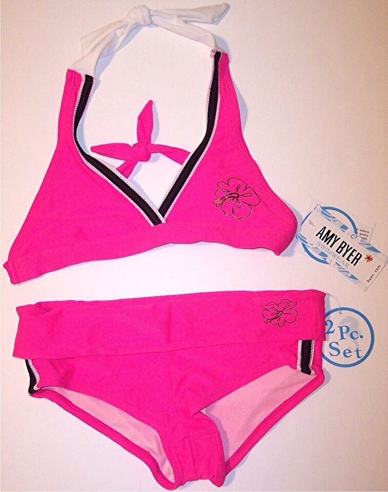 NWT Amy Byer Girl's 2 Pc. Hot Pink Hibiscus Bikini Swimsuit, Size 14, $30