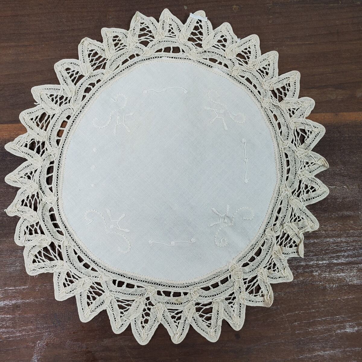Vintage Applique Doily Beige 11 Inch Round