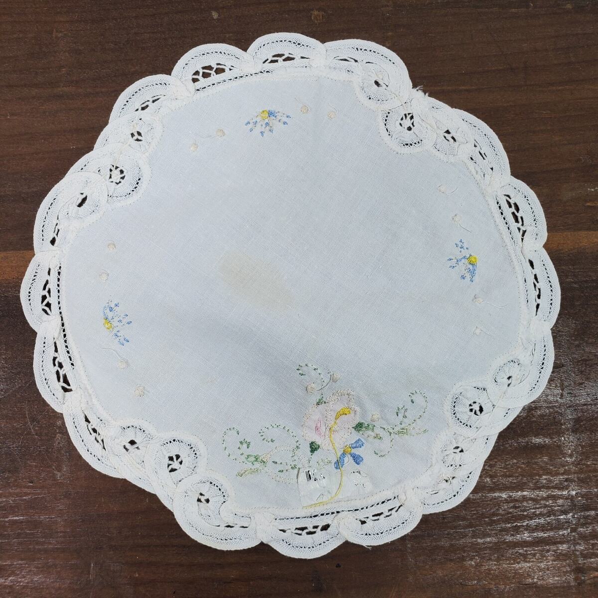 Vintage Applique Doily Pink Tulip 9 Inch Round