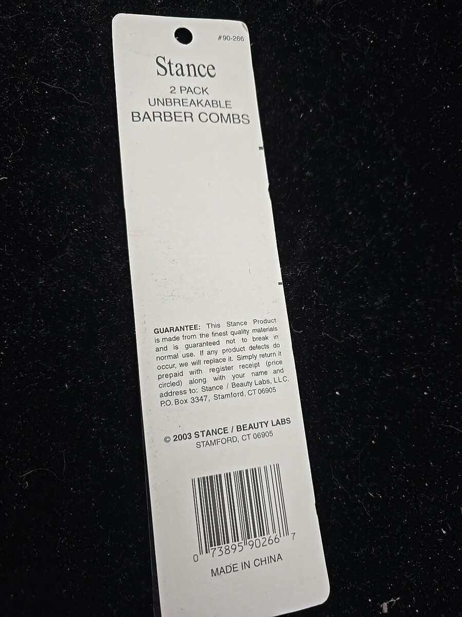 NOS VTG Stance Unbreakable Combs Twin Pack (2) Dresser Barber #90-266 Black