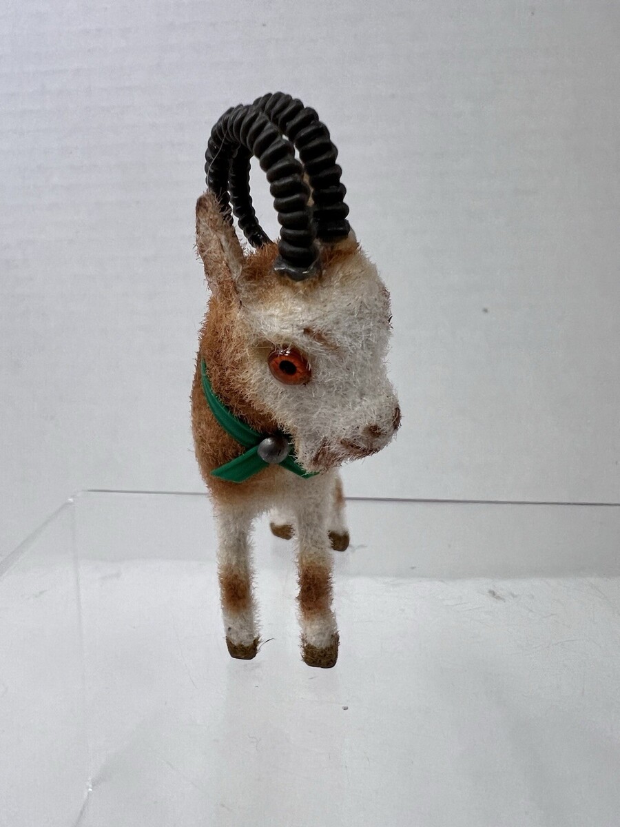 Wagner Kunstlerschutz Flocked Billy Goat Curved Horns Handwork Germany 3 Inch