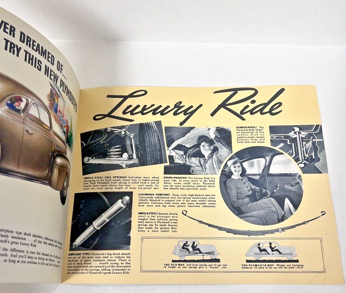 1940 Plymouth Roadking Luxury Ride Original Color Brochure 14 pages bottom right corner has a crease all thru
