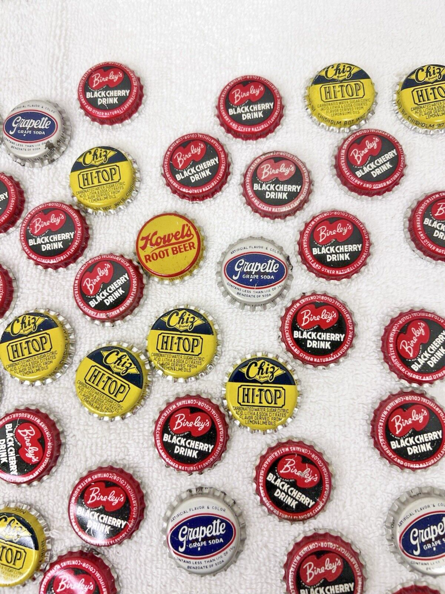 82 Vintage Cork Backed Soda Bottle Caps Howel's Bireley's Grapette Chiz Hi-Top