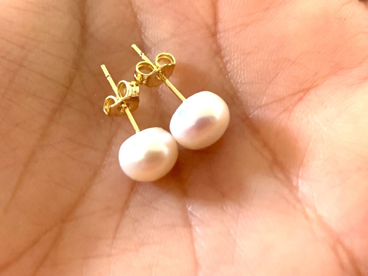 14k gold pearl earrings studs earrings real pearls gold earrings Stone Queen