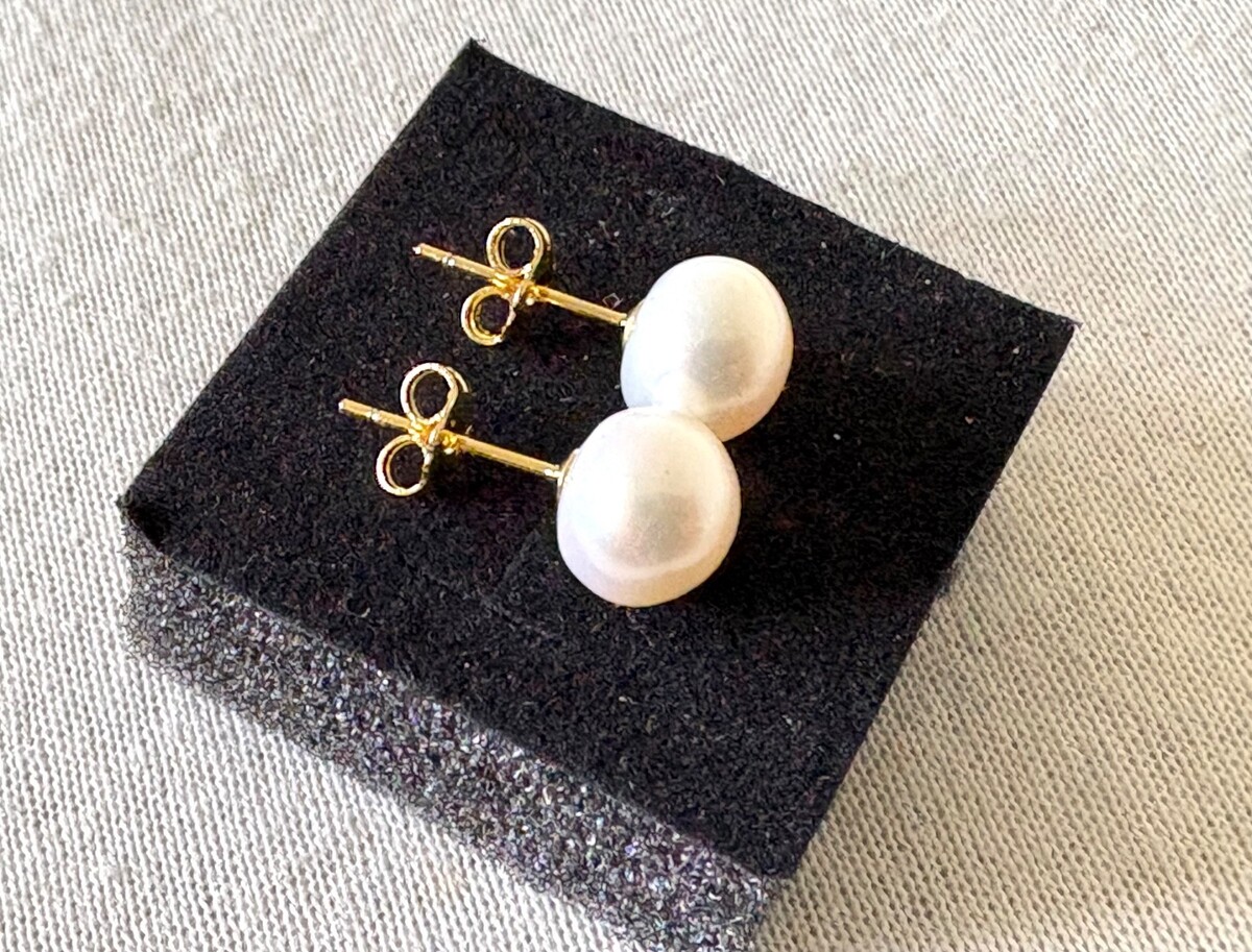 Elegant 9mm freshwater pearl earrings featuring lustrous, round pearls set on classic studs. Timeless and versatile, perfect for everyday elegance or special occasions.