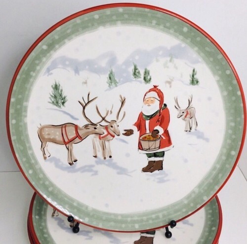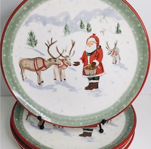 4 Dinner Plates Christmas Santa and Reindeer and 50 similar items