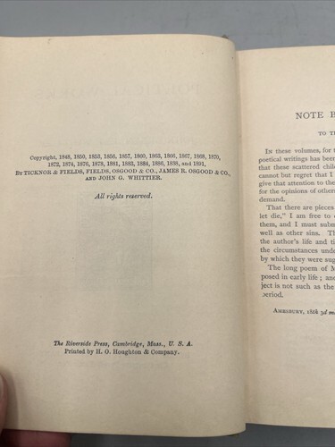 Whittier’s Poems, 1891 Antique Book, by JG and 44 similar items