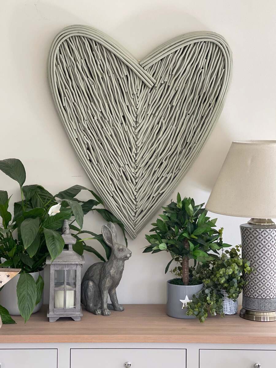 Hand Painted Large Country Sage Wicker Heart - 85cm
