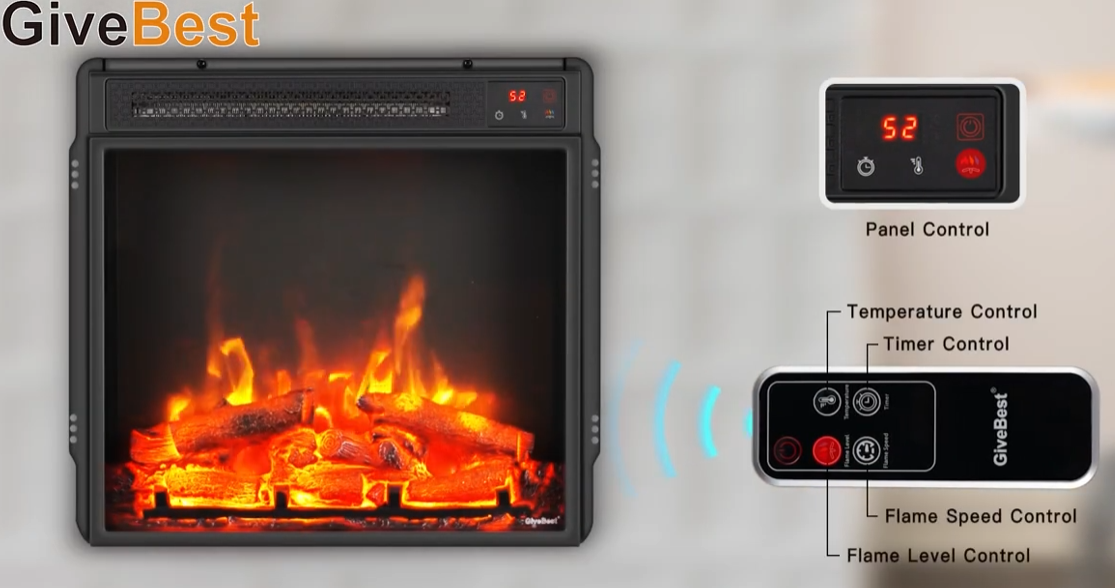 18" Electric Fireplace Insert Freestanding & Recessed Heater Log Flame Remote