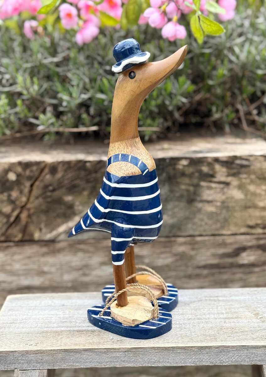 Made from Bamboo, this Duck proudly stands out with its vibrant blue colour. Look out for other hand-painted ducks.