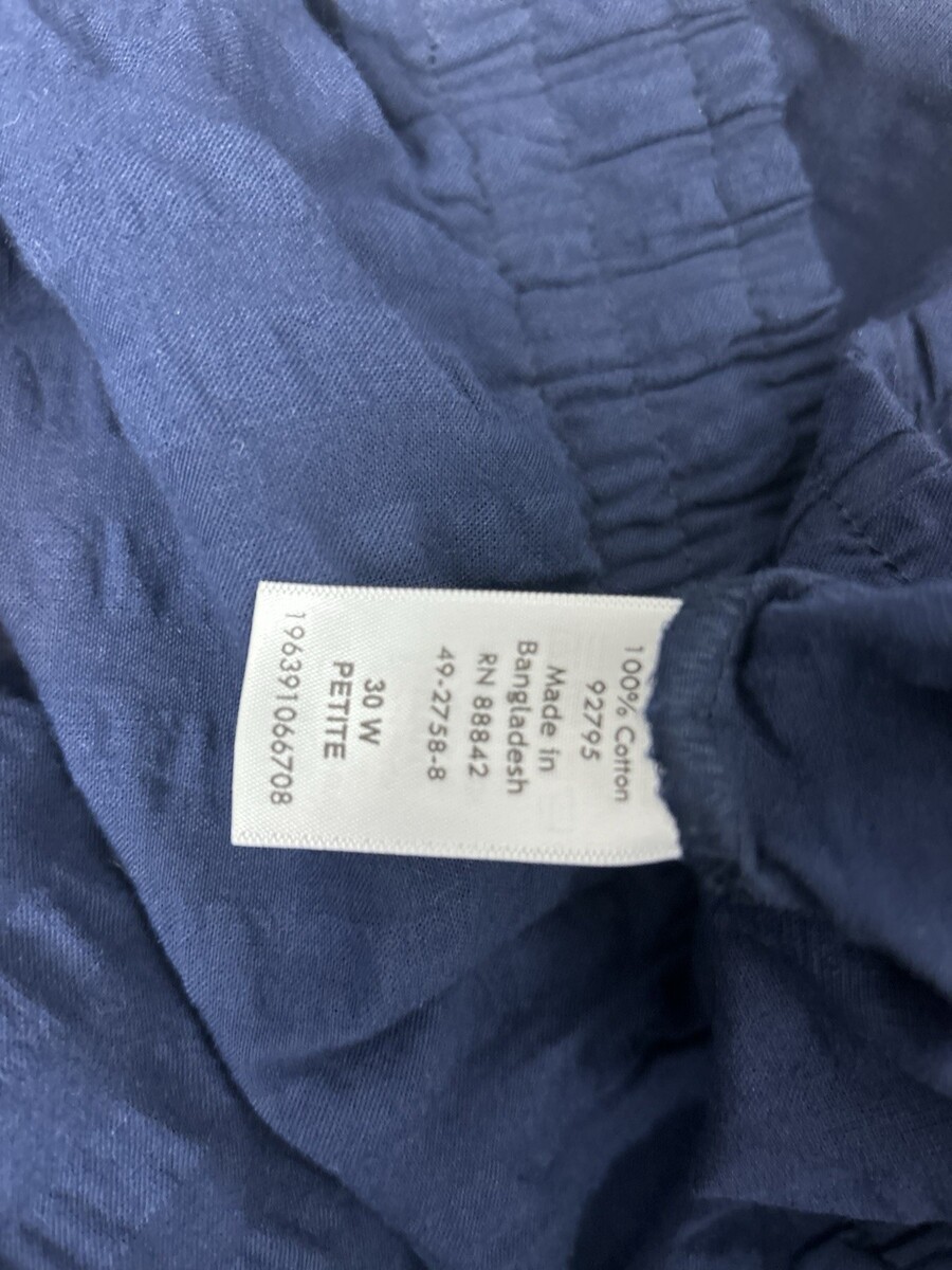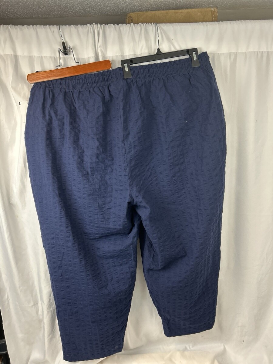 Woman Within 30W Petite Navy Blue Seersucker Cropped Pants Elastic Waist Comfort