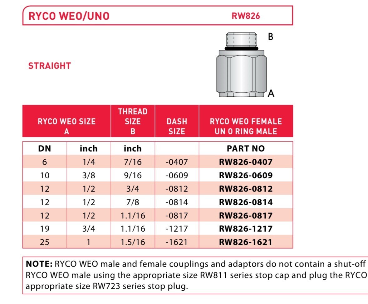 Qty-2-RYCO RW826-0609 3/8” ORB/UNO Male X WEO DN10 Push Lock Straight Adaptor