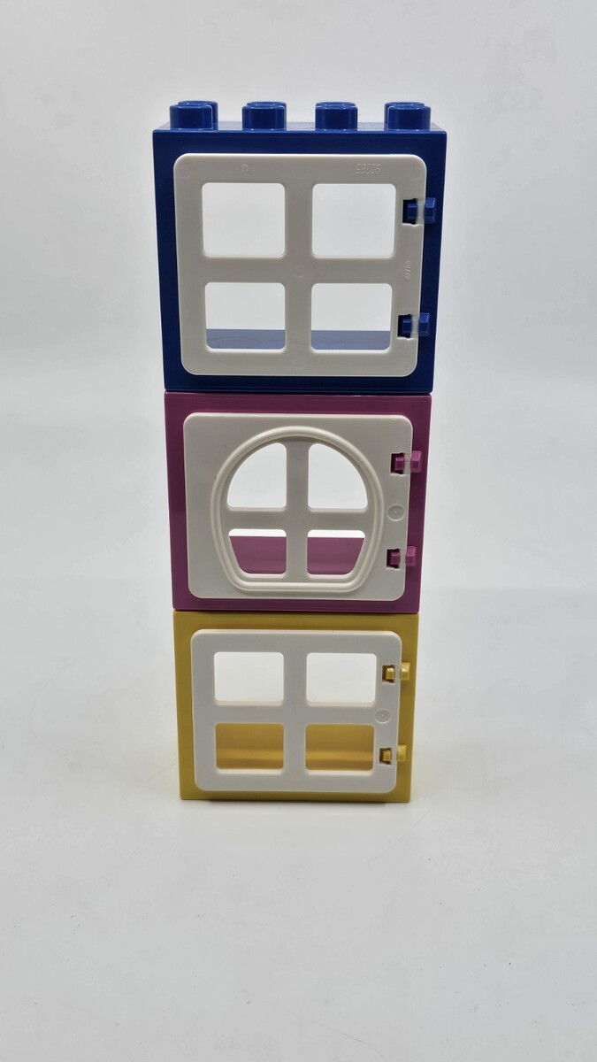 (3) LEGO Duplo PINK Yellow Blue Windows 2x4 Square Frame Pane Door