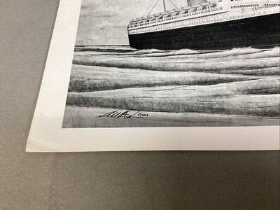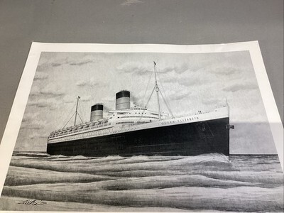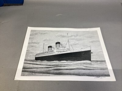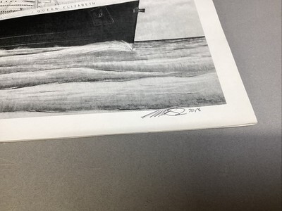 Queen Elizabeth Ship Art Print - 16x12?. In good condition. Signed in 2018. Looks like the original print was from 2016 and signed at that time too.