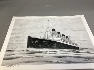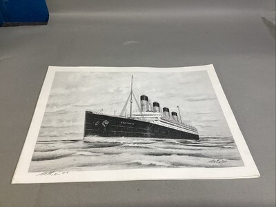 USS Aquitania Ship Art Print - 16x12?. In good condition. Signed in 2018. Looks like the original print was from 2016 and signed at that time too.
