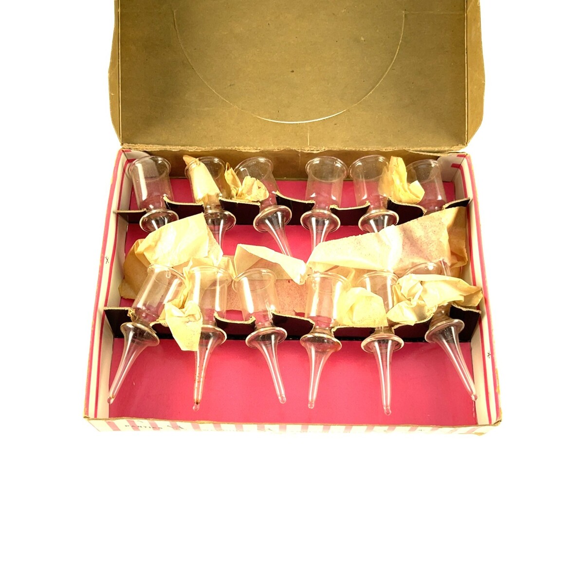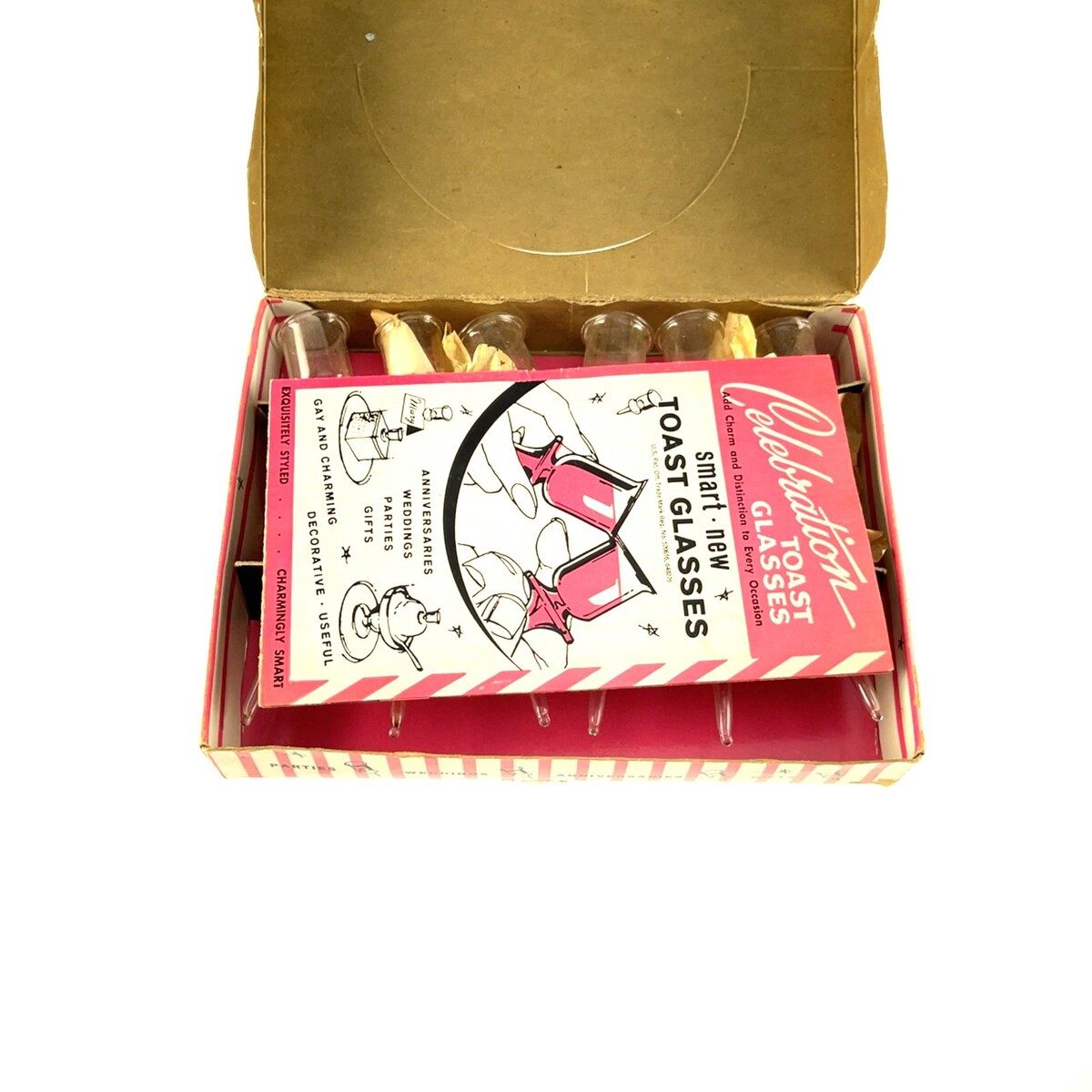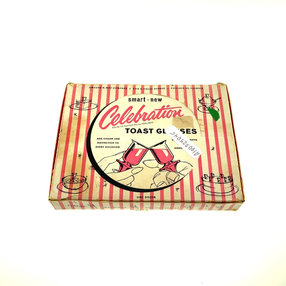 One-Dozen Vintage Celebration Toast Glasses Maude B. May Company Box Included