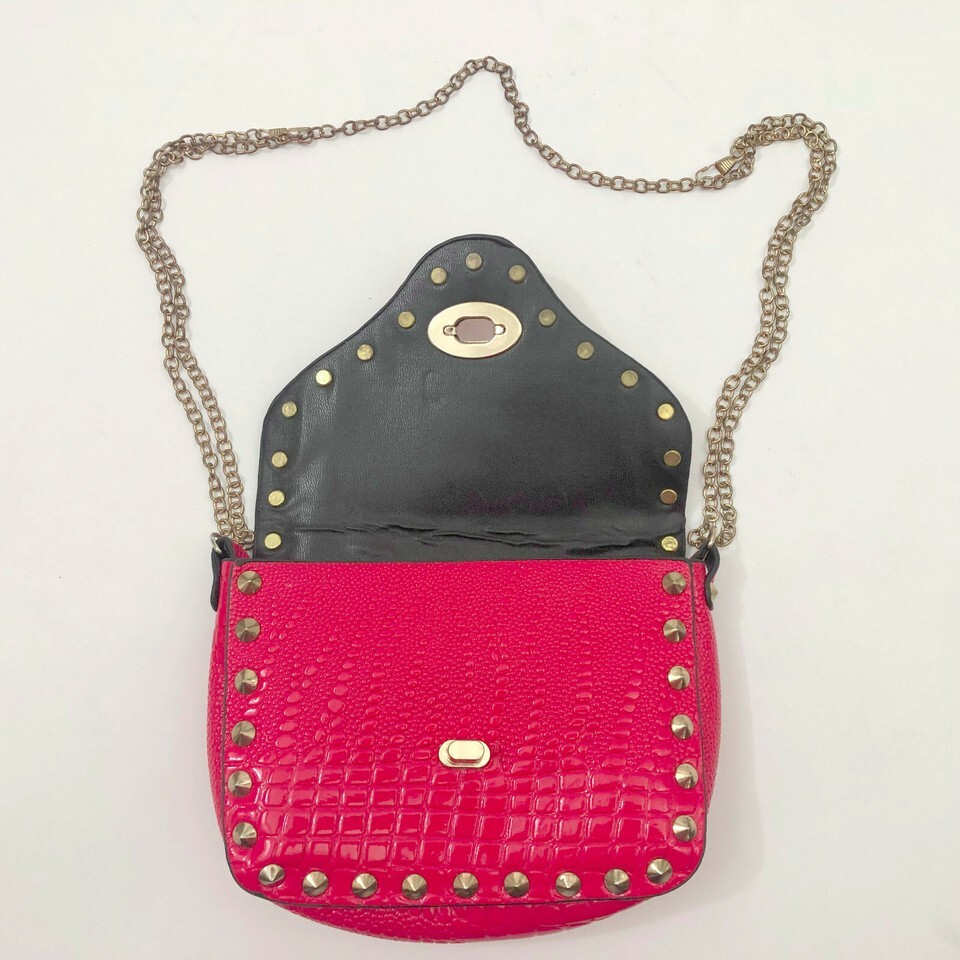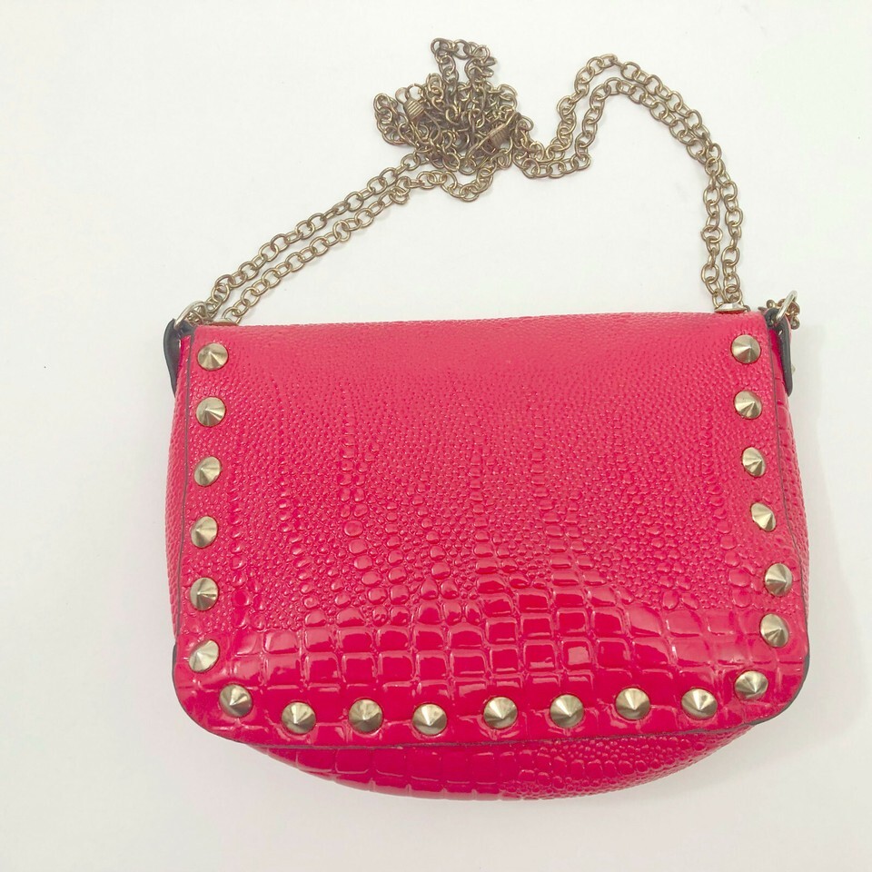 Red Embossed Faux Leather Small Shoulder Cross body Bag Rhinestone & Studs