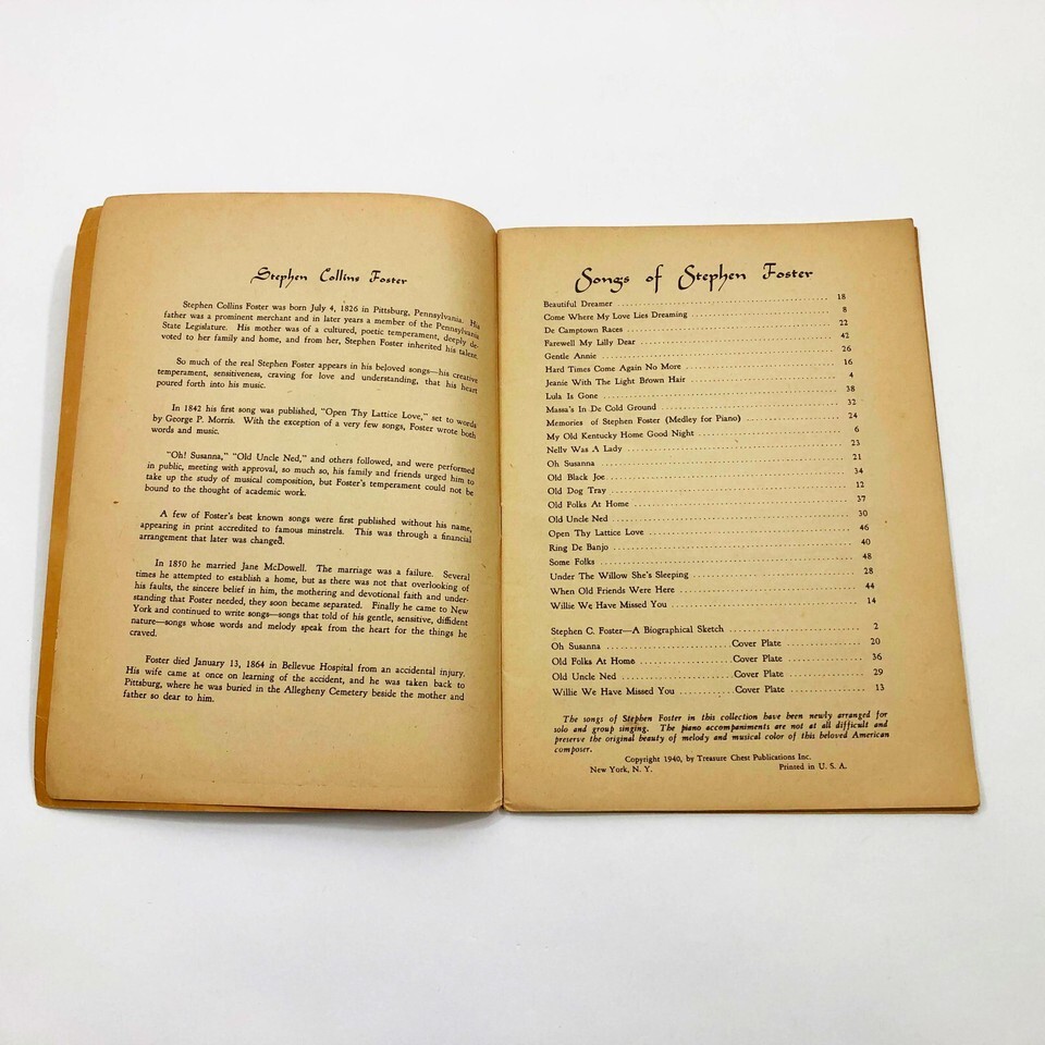Stephen Foster Treasure Chest of Songs Songbook 48 Pages 1940