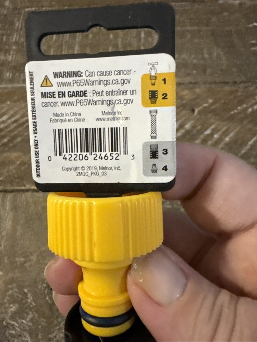 The Melnor Quick Connect Faucet Adapter is a convenient and efficient solution for connecting a hose to a faucet. Made by the trusted brand Melnor, this adapter ensures a secure fit and easy installation. Perfect for watering equipment and outdoor living spaces, this product is ideal for efficiently maintaining your yard and garden.