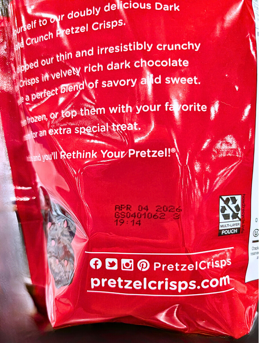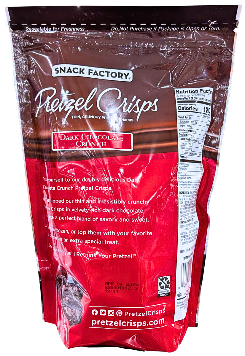 Snack Factory Dark Chocolate Crunch Pretzel Crisps 20 Oz EXP 04/2026