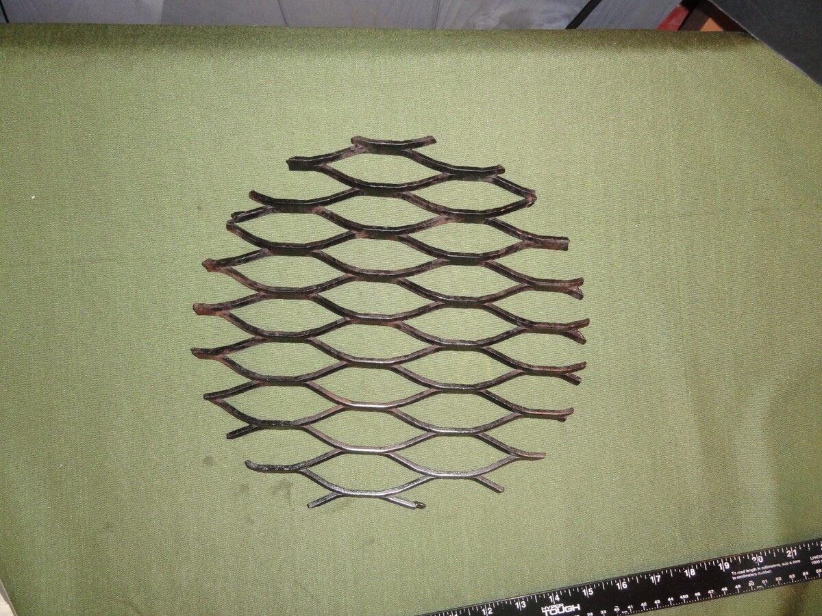 DURING THE KOREAN WAR THE MILITARY WOULD REMOVE THE LID FROM THE POT BELLY STOVE AND PUT THIS GRILL ON TOP OF THE HOLE WHERE THE EXPOSED FIRE / HEAT WOULD COOK FOOD, HEAT COFFEE, PUT CANS OF CHILI ON THE GRILL TO COOK, THIS GRILL WOULD PREVENT ANY FOOD ITEM FROM FALLING INTO THE LID HOLE.