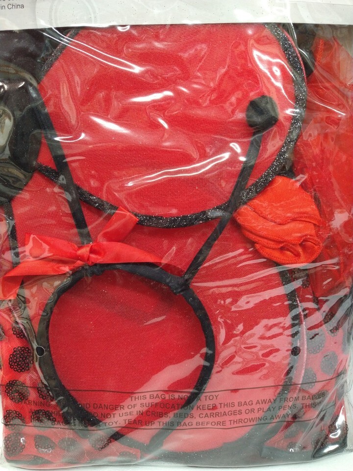 Cute Girls Red Black Queen Ladybug Costume Size 4-6 Dress Wings Antenna Headband
