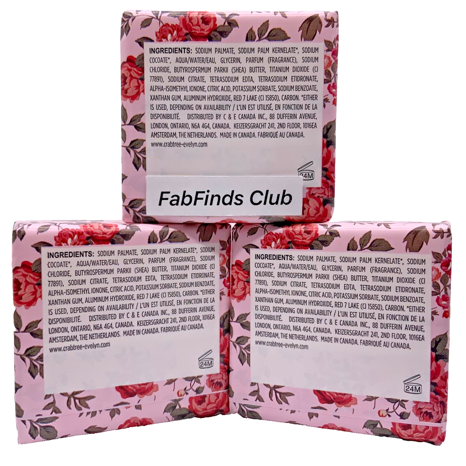 Crabtree & Evelyn Rosewater Bar Soap Triple Milled 10.5oz (3x3.5oz) 3pc Set