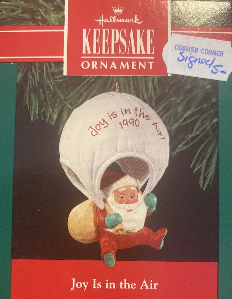 SIGNED Hallmark Keepsake Joy is in the Air Christmas Ornament Santa Parachuting. Condition is New. Shipped with USPS First Class Package.