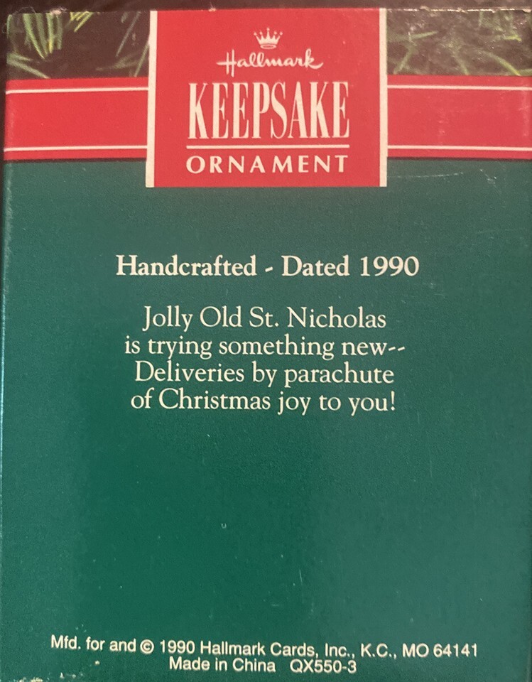 SIGNED Hallmark Keepsake Joy is in the Air Christmas Ornament Santa Parachuting