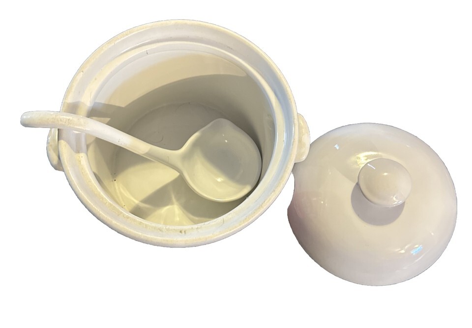 The subject of the tureen is soup and it is a great collectible for enthusiasts of food and beverage advertising. It is a used item but has been well taken care of by its previous owner. The tureen will be shipped carefully to ensure it arrives in excellent condition.