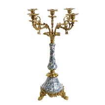Blue and White Porcelain Brass 5-Arm Candelabra  Court Style Candle Holder for  added to cart.