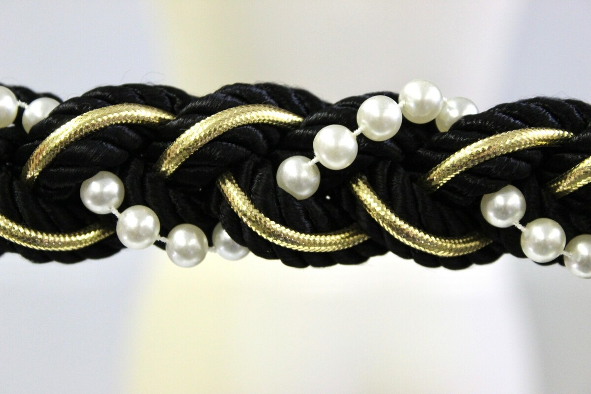 Susan Maddox Designs Vintage Braided Rope Belt  Black Gold Pearls Adjustable SML added to cart.