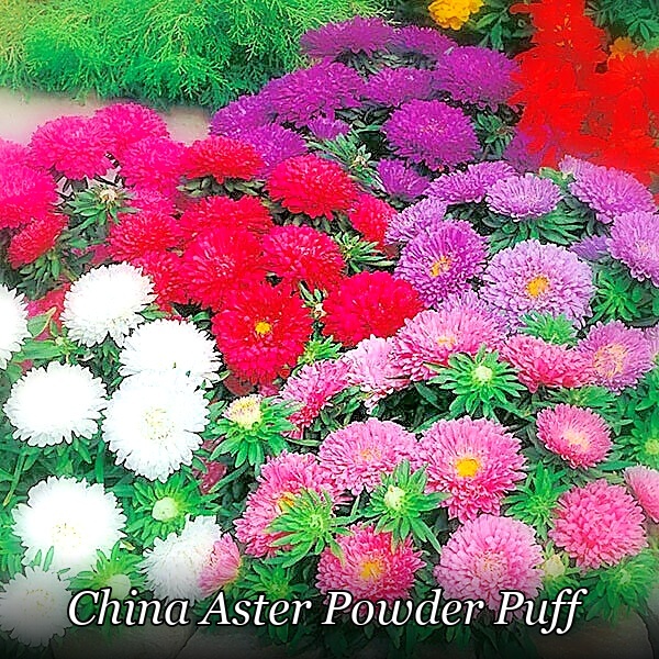 Tropical Charm 251+China Aster Powder Puff Mix Seeds Cut Flowers Summer Fall