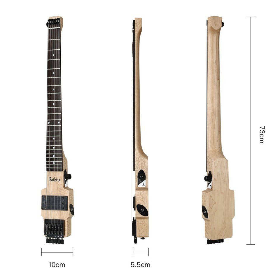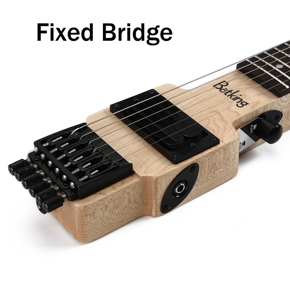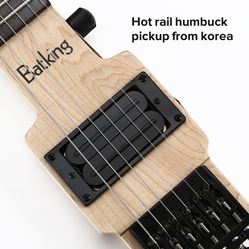 Batking Brand Electric Travel Guitar With Fixed Bridge Natural Color Canadian Maple Body With Padded Bag Push/Pull