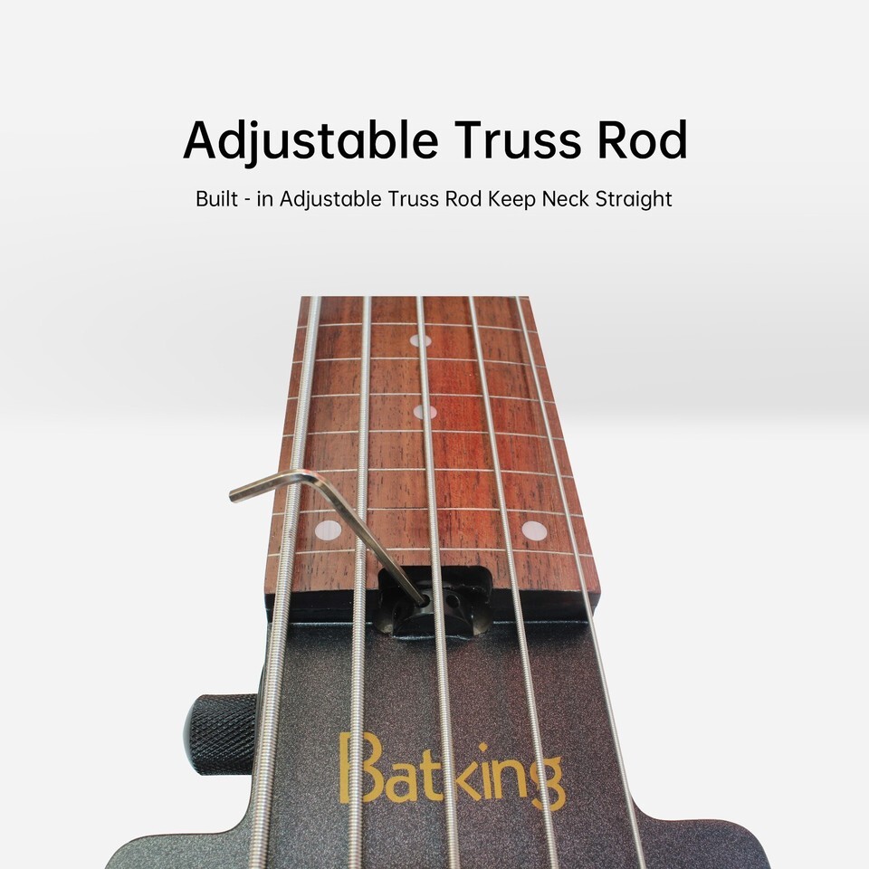 ?Adjustable Truss Rod ?The travel bass guitar neck built-in adjustable truss rod can manually adjust the neck curvature to keep the Travel Electric Bass neck straight.