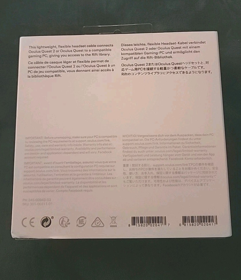 NIB! OCULUS QUEST 2 LINK CABLE USB 3 Type-C 5 METERS, Black