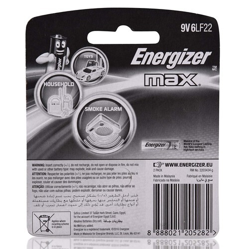Energizer MAX Alkaline Batteries, 9V, 2 Batteries/Pack