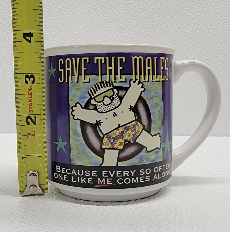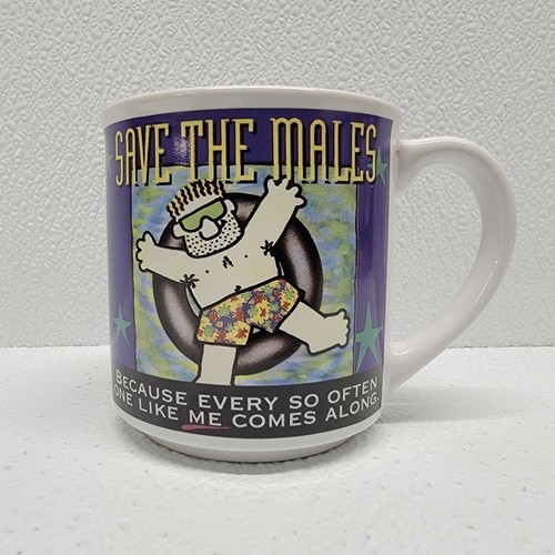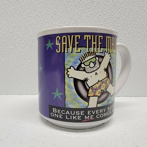 Rare Vintage Recycled Paper Greetings Save The Males Mug Funny Cocky Guy Gag Gift. Says "Save the Males because every so often one like ME comes along." Images show actual mug that will ship.