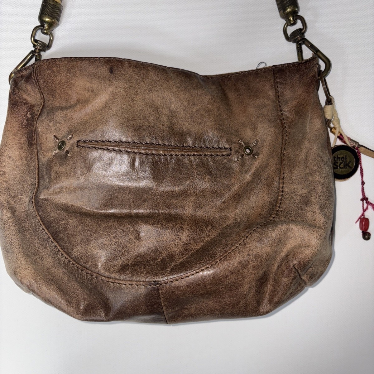 The Sak Brown Leather Braided Strap Tote Bag Handbag Purse Pre-owned added to cart.