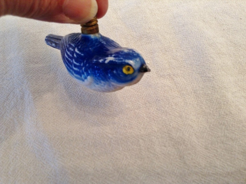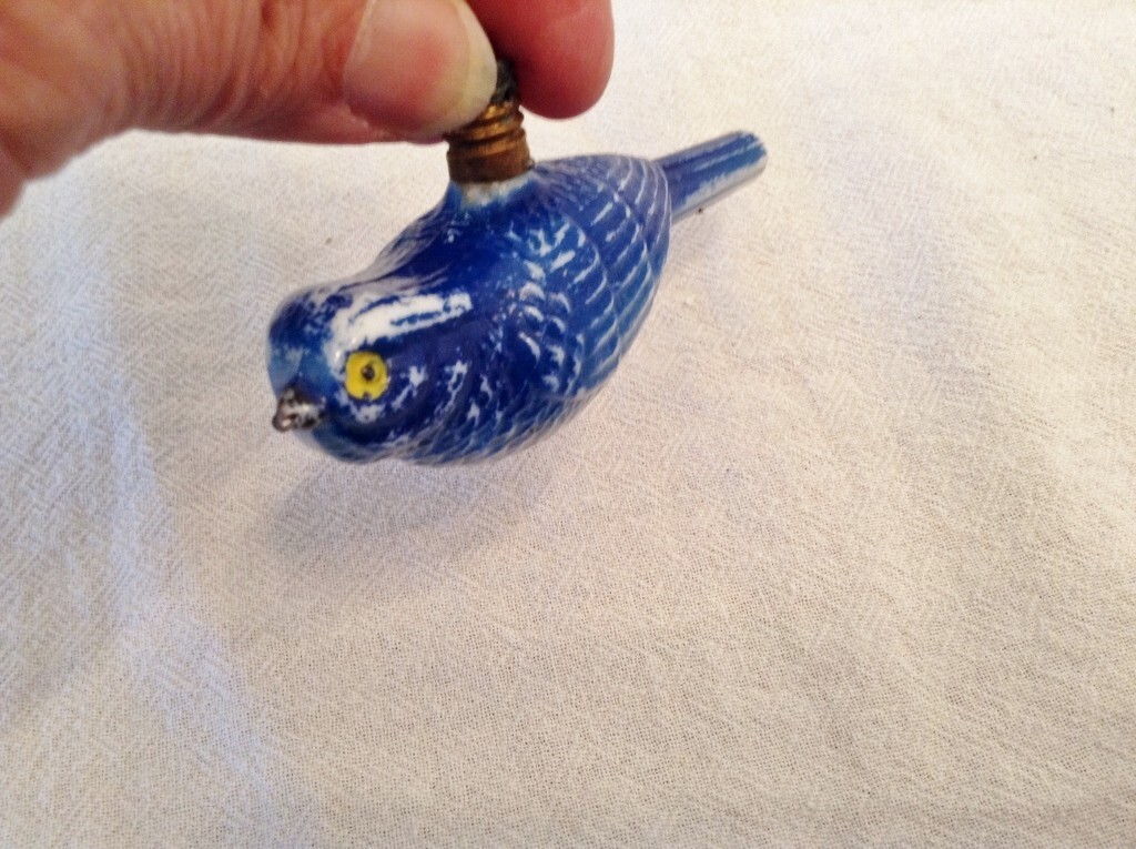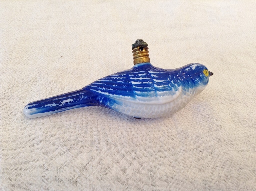 Vintage Christmas Ornament Figural Light Bulb Milk Glass Blue Bird JAPAN added to cart.