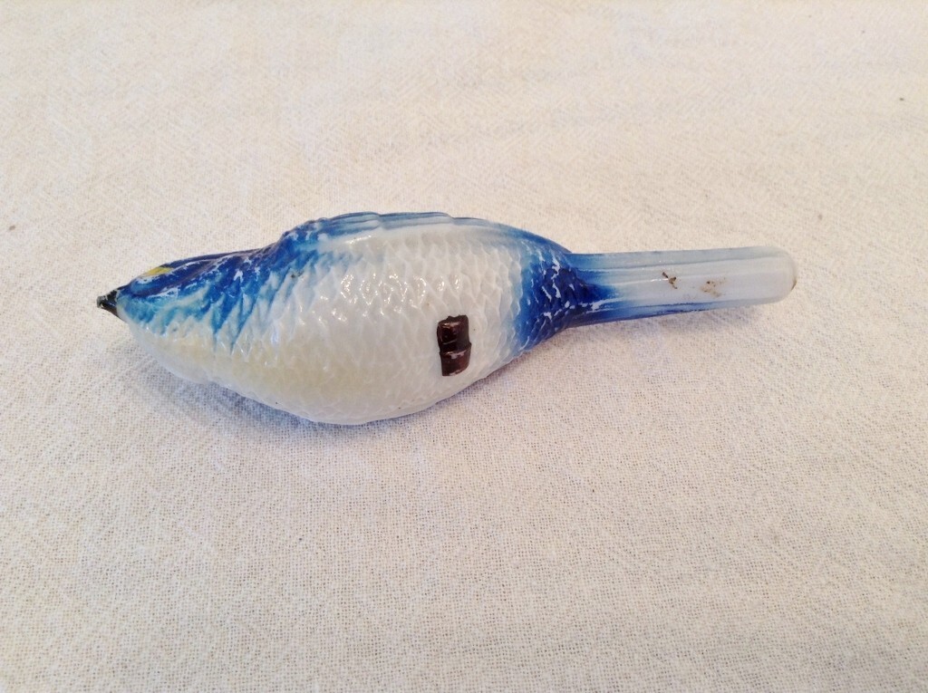 Vintage Christmas Ornament Figural Light Bulb Milk Glass Blue Bird JAPAN