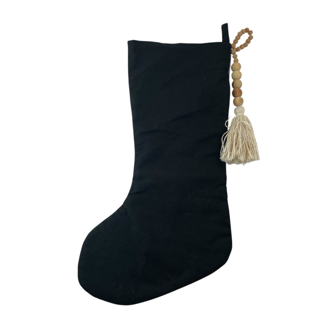 World Market Christmas Stocking Modern Embroidery Tree Cottage Core Bead Tassle